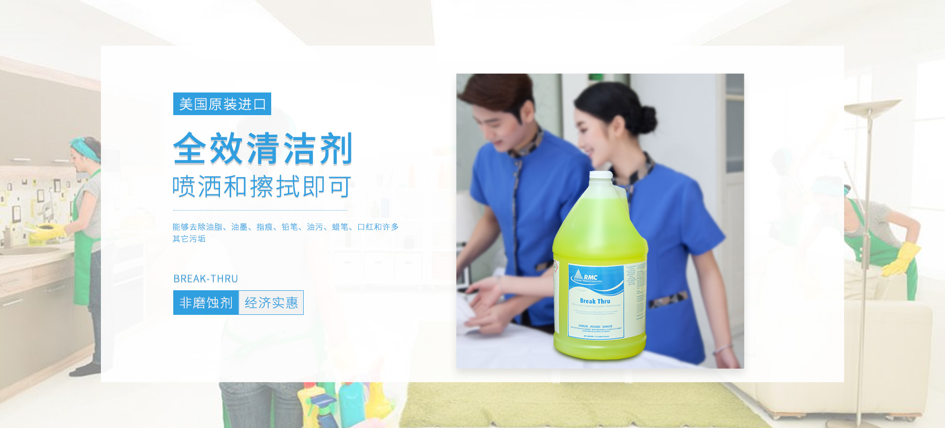 新朗環(huán)境自2015年起與美國具百年歷史的跨國企業(yè)RMC(Rochester Midland Corporation)合作, 進口 RMC用于機械制造、交通運輸、航天航空、石油化工、食品禽肉乳制品加工等工業(yè)生產制造行業(yè)的專業(yè)清洗、滅菌系列產品,以及酒店、CBD大廈、學校(包括幼稚園)、醫(yī)療機構、百貨商場、養(yǎng)殖業(yè)、餐飲業(yè)等商用行業(yè)清潔、消毒系列產品,還有專用于各個行業(yè)單位“廁所革命”的公共衛(wèi)生間根源除味第5代SANOR?衛(wèi)生間自動滴管系統(tǒng)、第6代百屋潔SIOGIENIUS?電子控制衛(wèi)生間自動滴注系統(tǒng)等系列產品項目。